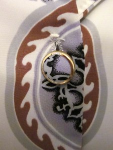 This weekend I went with my friend J to the V&A to see the “Imperial Chinese Robes from the Forbidden City” exhibition, which was stunning, though it was the last day of the exhibit. It was all about the Chinese emperor and empresses robes from the Qing dynasty (1644-1911). There were some incredible examples of embroidery and frabrics. I ended up buying the book related to the exhibition plus a souvenir – a piece of Chinese-style frogging which may be coming to a project sometime in the near future!