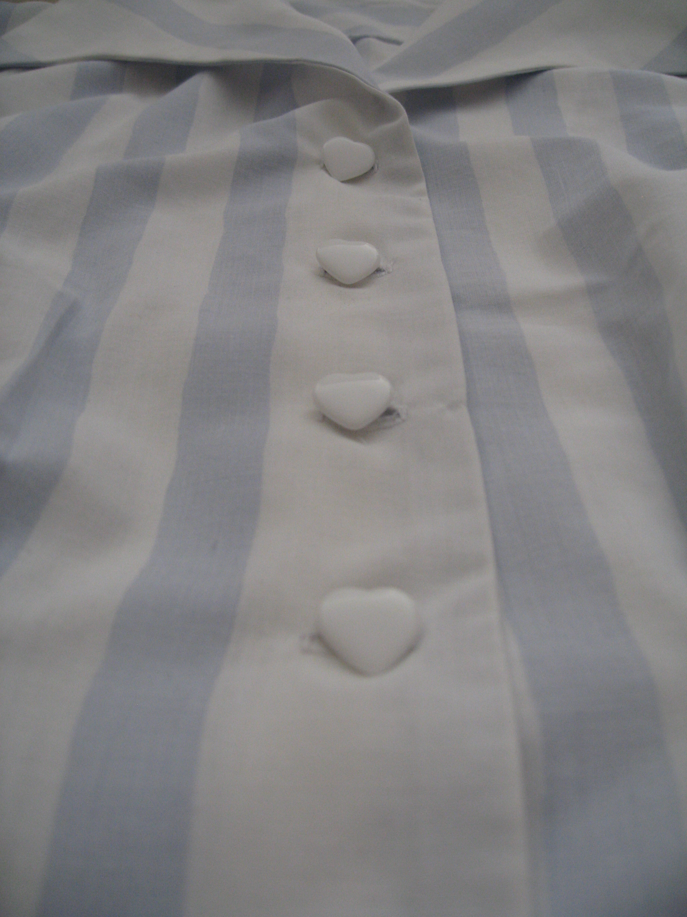 Oh wow it looks fantastic, really fresh and pretty and I LOVE the buttons. Thank you for sending me the link, it’s so great to see vintage patterns made up and you’re right, not a hint of scary queen about it! You look wonderful in it – you’ve totally inspired me to give the pattern a go, thanks! xx