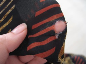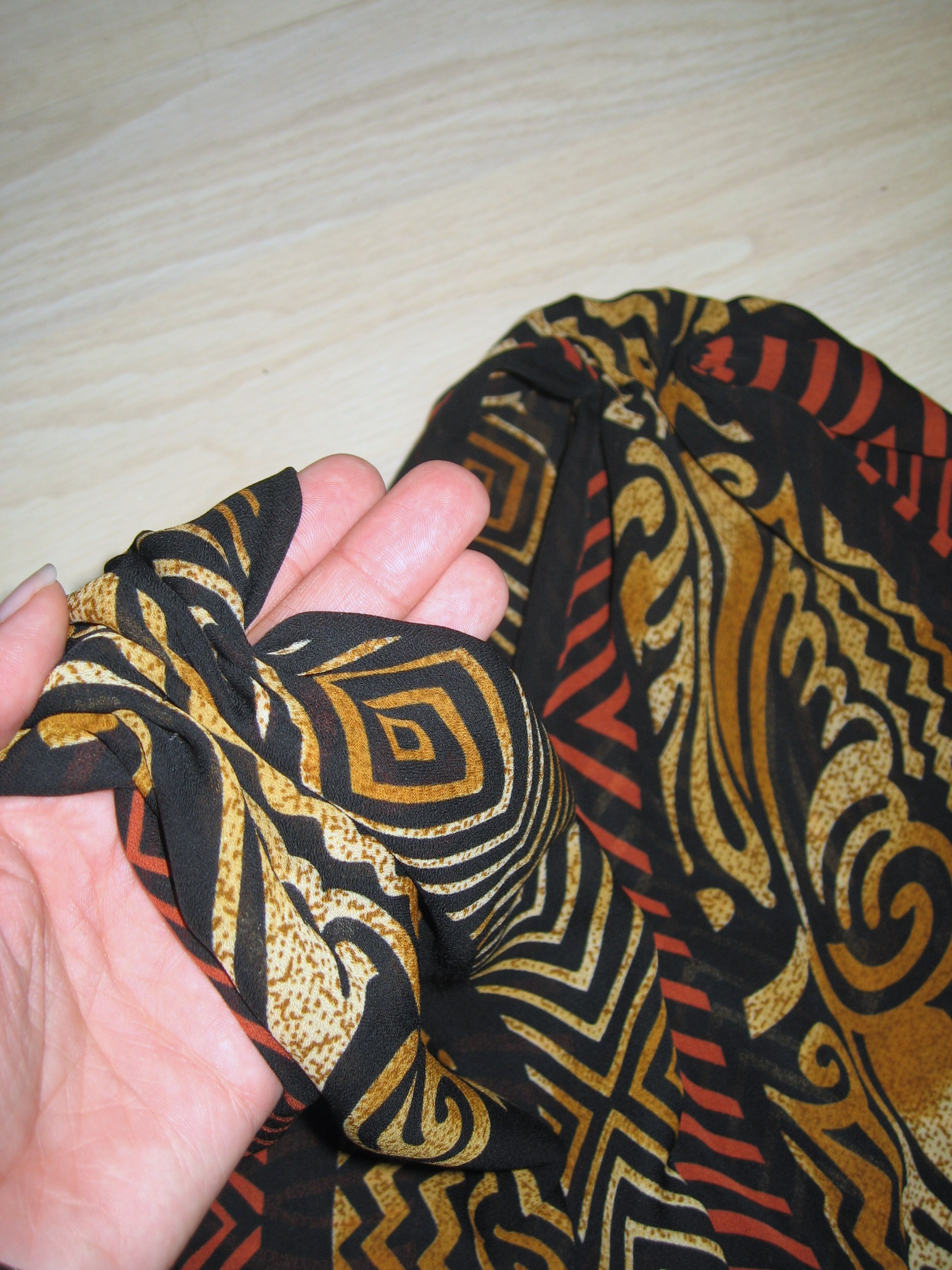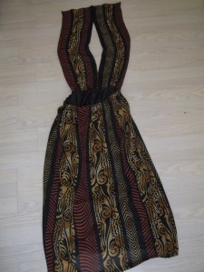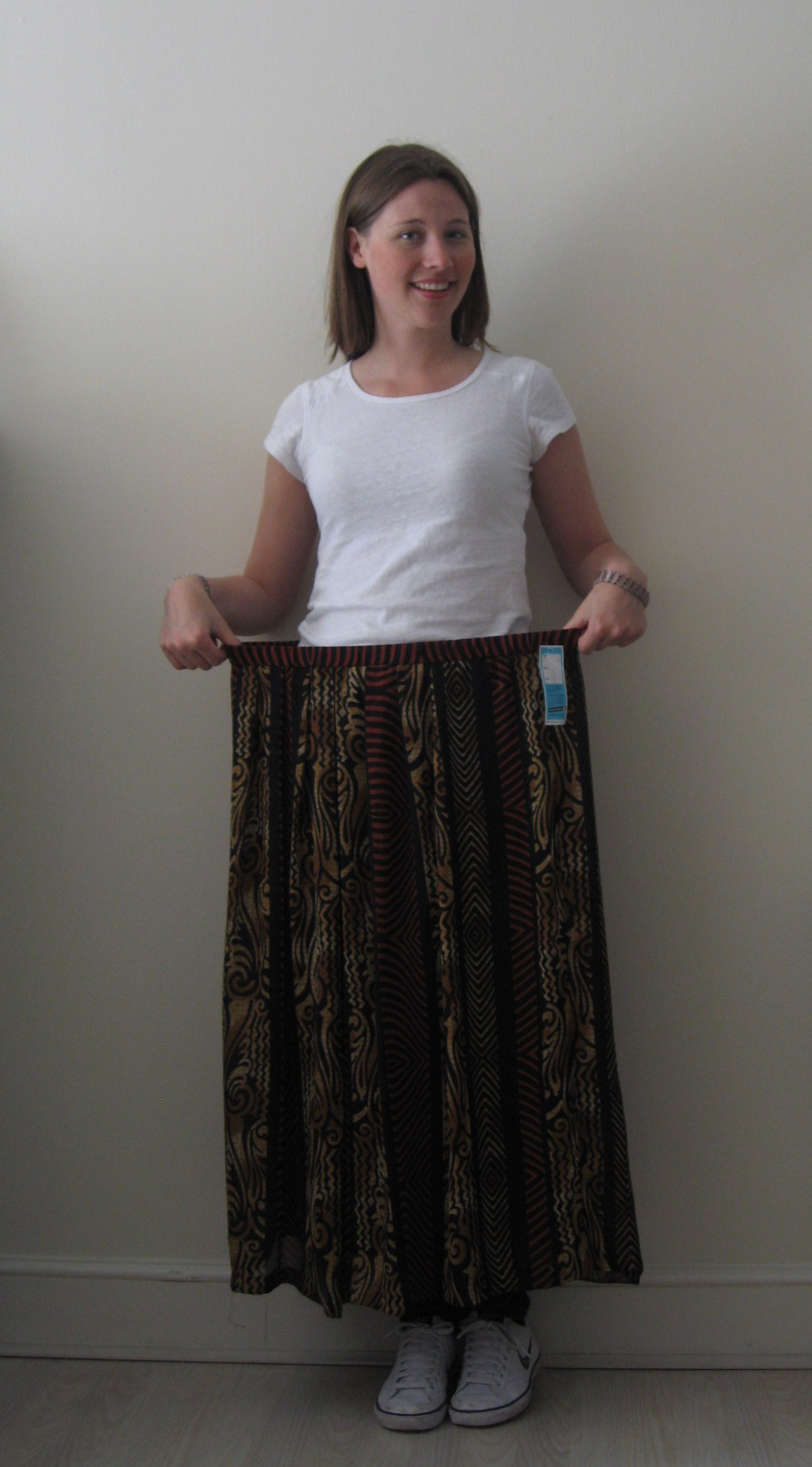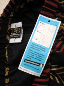 It was very large and the material was not pleated, which was good as the pleats can be difficult to get rid of (ask me how I know).  I kind of fell in love with the African-style print on the fabric even though there were several holes and half the hem was hanging off. This was £3.99 from the Save the Children shop in Whitby.