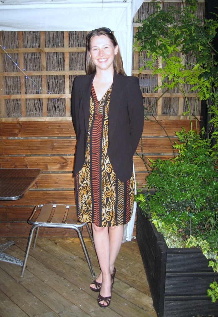 I ventured out to the most jungle-like part of London to model this: King’s Cross. I met my good friend B for a cheeky after-work glass of wine. She took me to a fabulous roof garden bar which was certainly a hidden gem – you had to enter a lunchtime takeaway food place, go behind the counter, head through a door marked ‘toilets’ and up some narrow stairs to find it… the roof garden was really pleasant in the sunshine and practically empty, but as it was totally enclosed, there was no view at all. B commented that since we were in King’s Cross, that was probably a good thing.