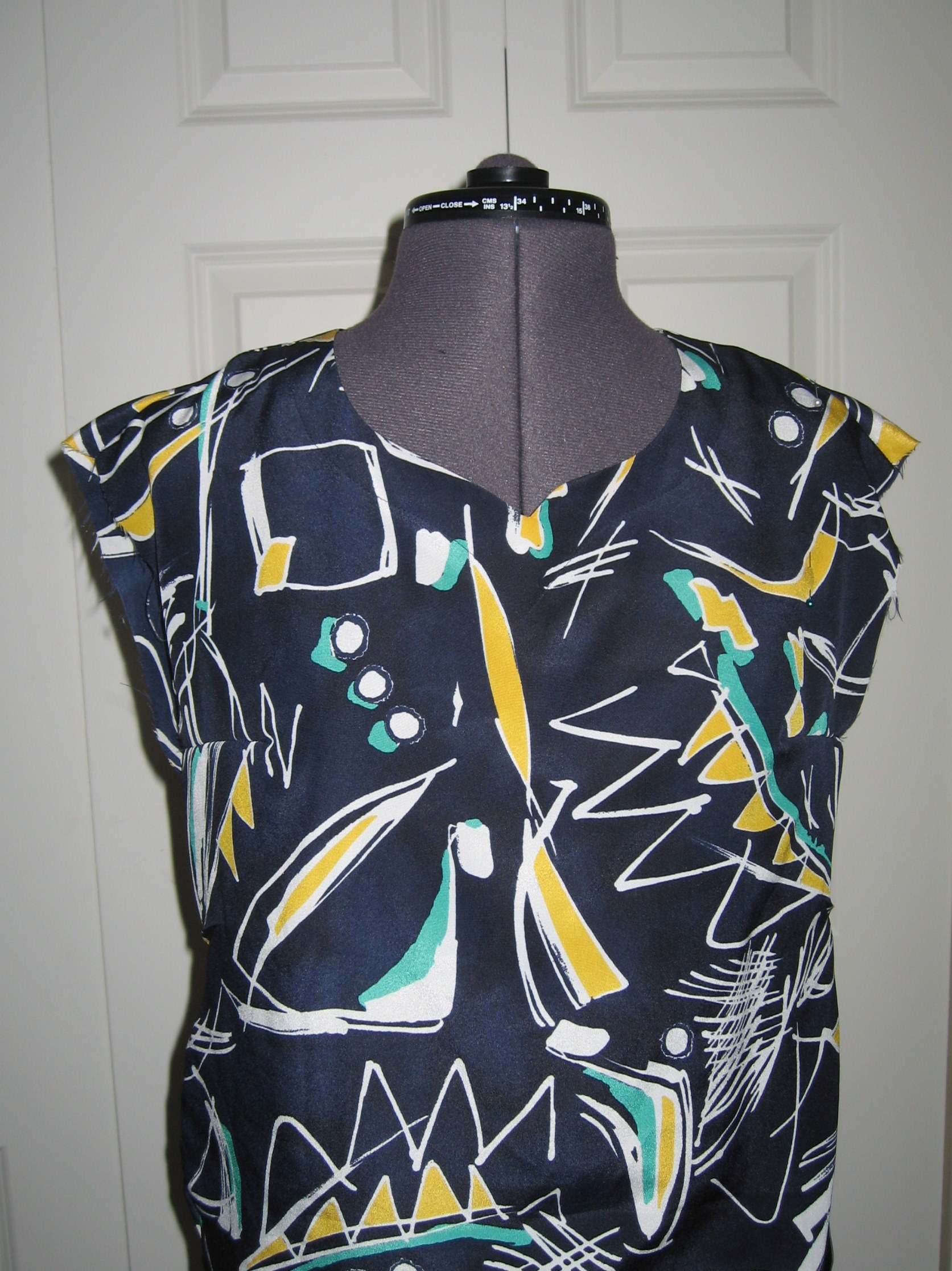 Then, I used my dressform to pin and sew new darts and side seams, and cut new armholes. I also adjusted the length.