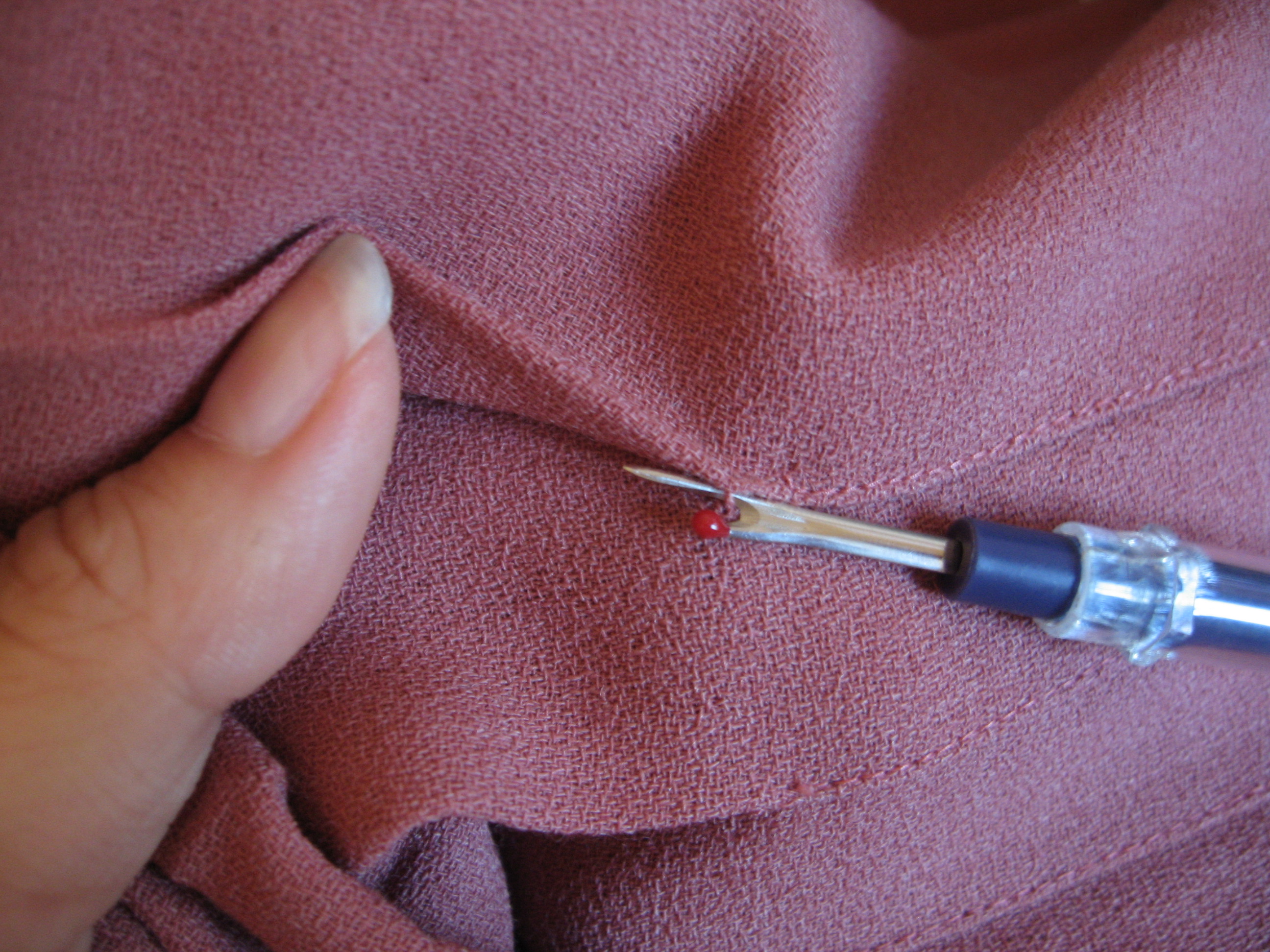 First, out came the stitches holding the pleats shut. This took a little time and care but was well worth it.