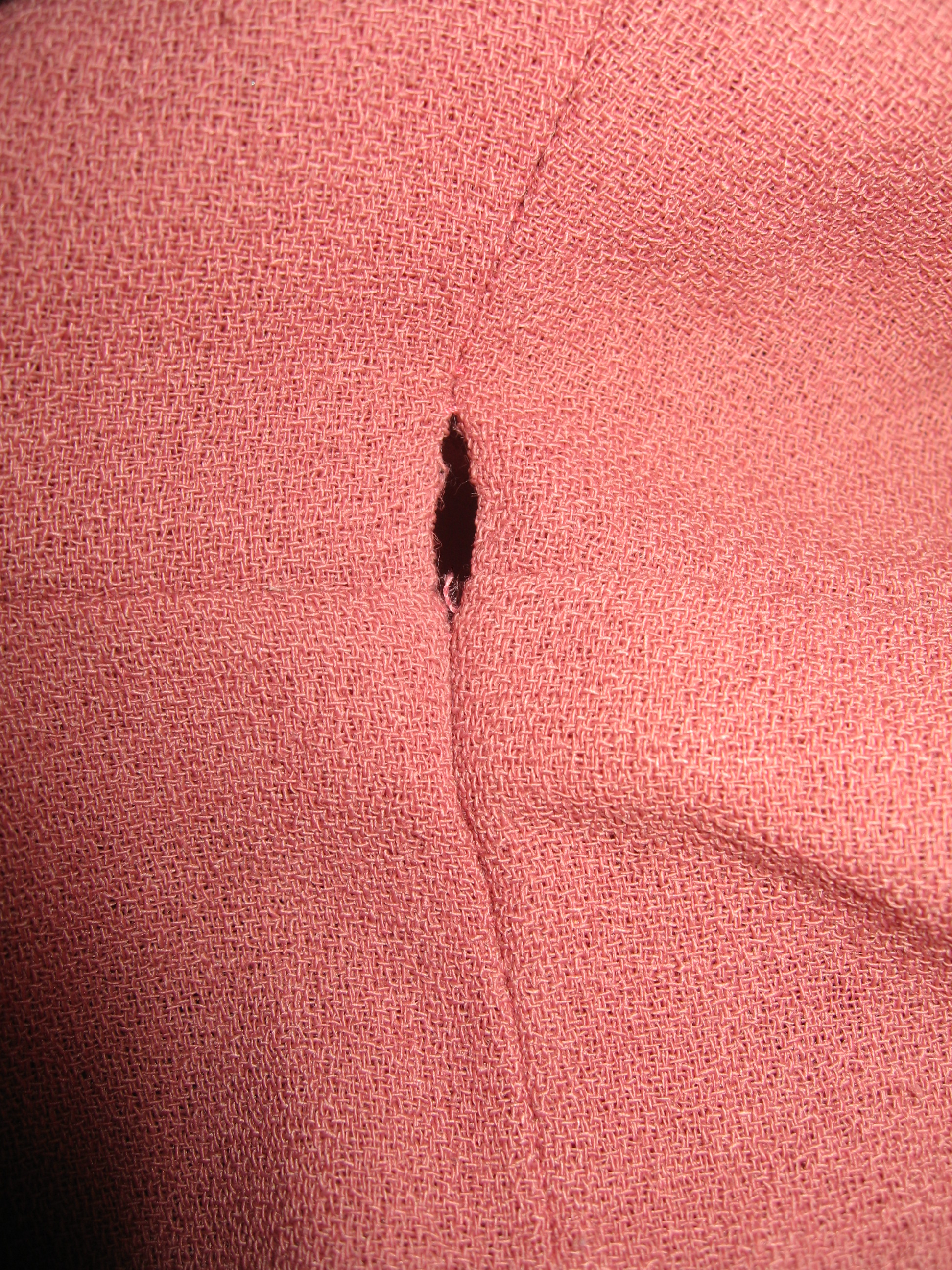 Removal of the belt loops left some holes at the seams which were easily fixed. The next thing I wanted to do was to remove the pocket. However, a closer look revealed it would have left holes in the fabric, so the pocket had to stay.