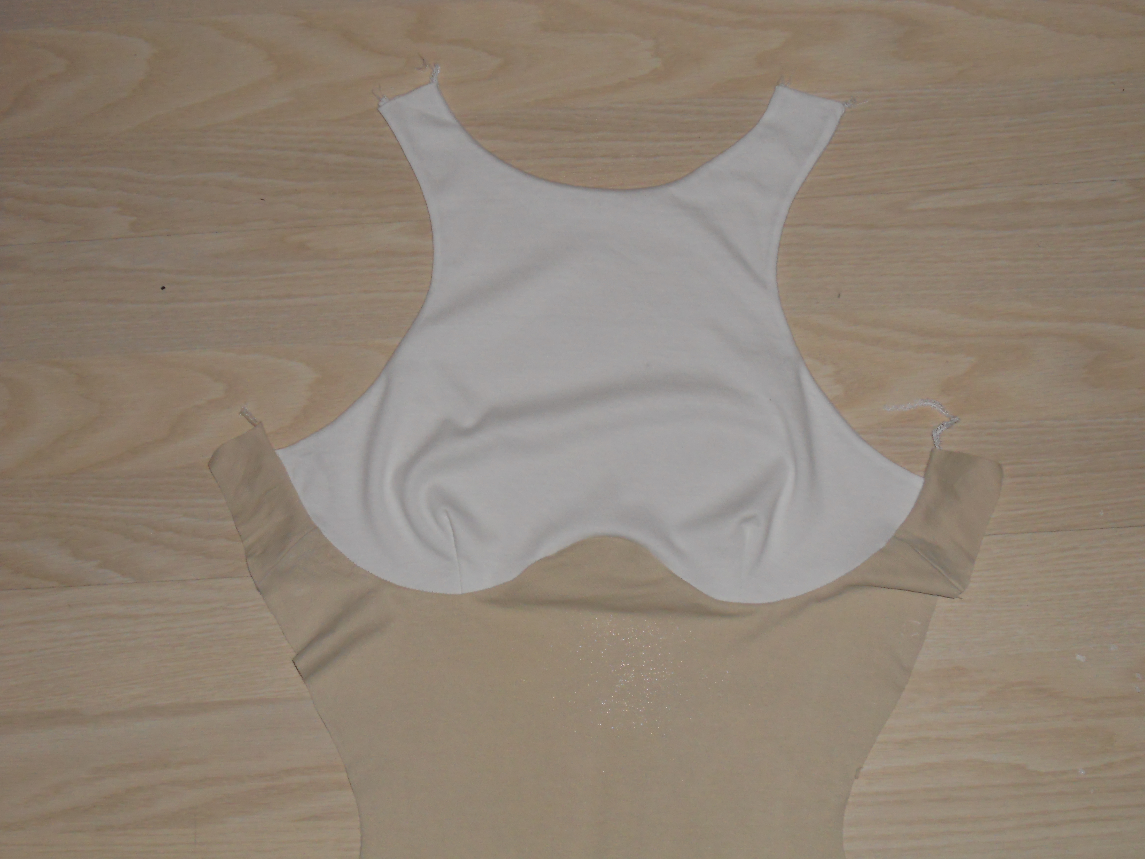 I cut 2 pieces of the white, so one could be used as a facing for the arm and neck holes, and also to help get rid of any transparency (it was quite thin!).