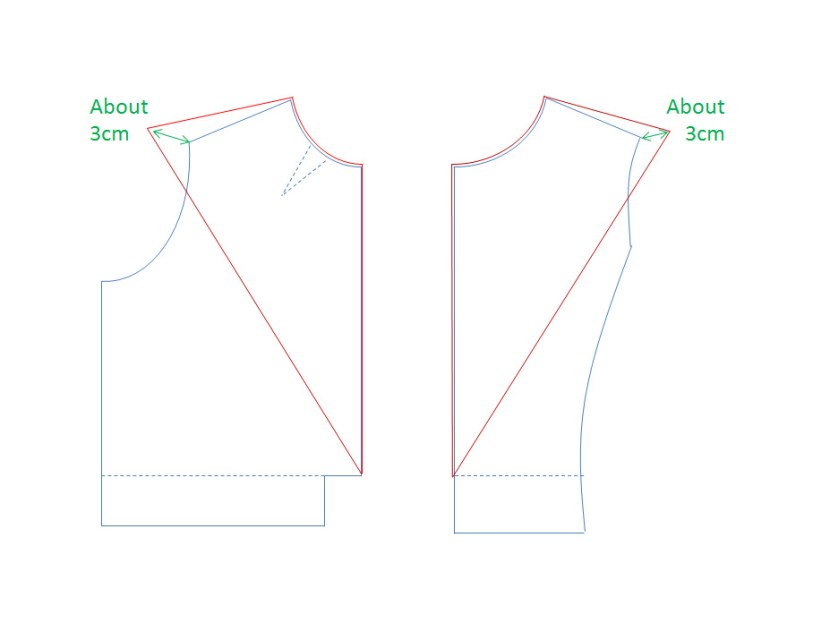 Here’s a really rough diagram (front on the left, back on the right). The key thing to remember was to make sure the top edges of both triangular pieces were equal in length.