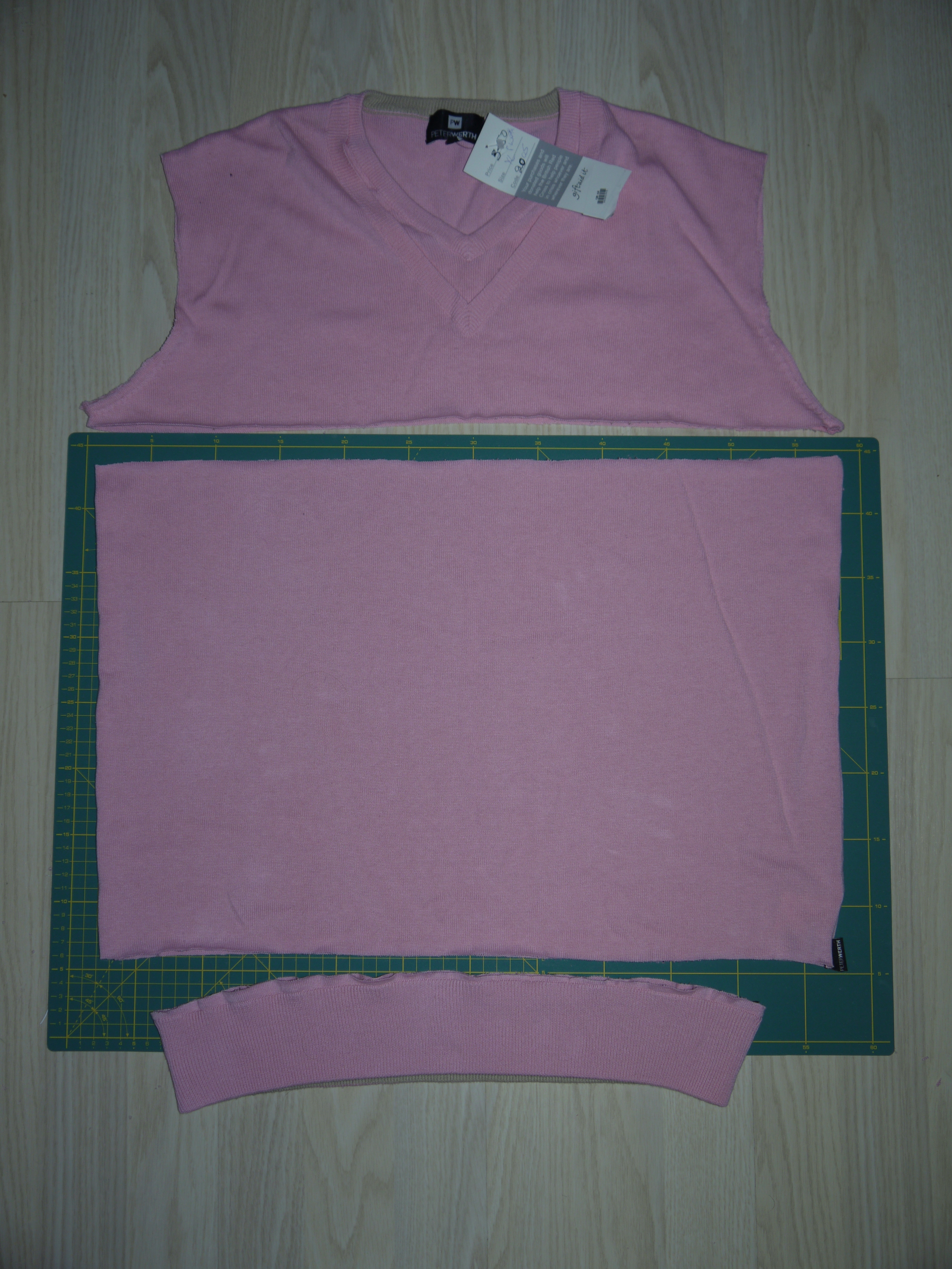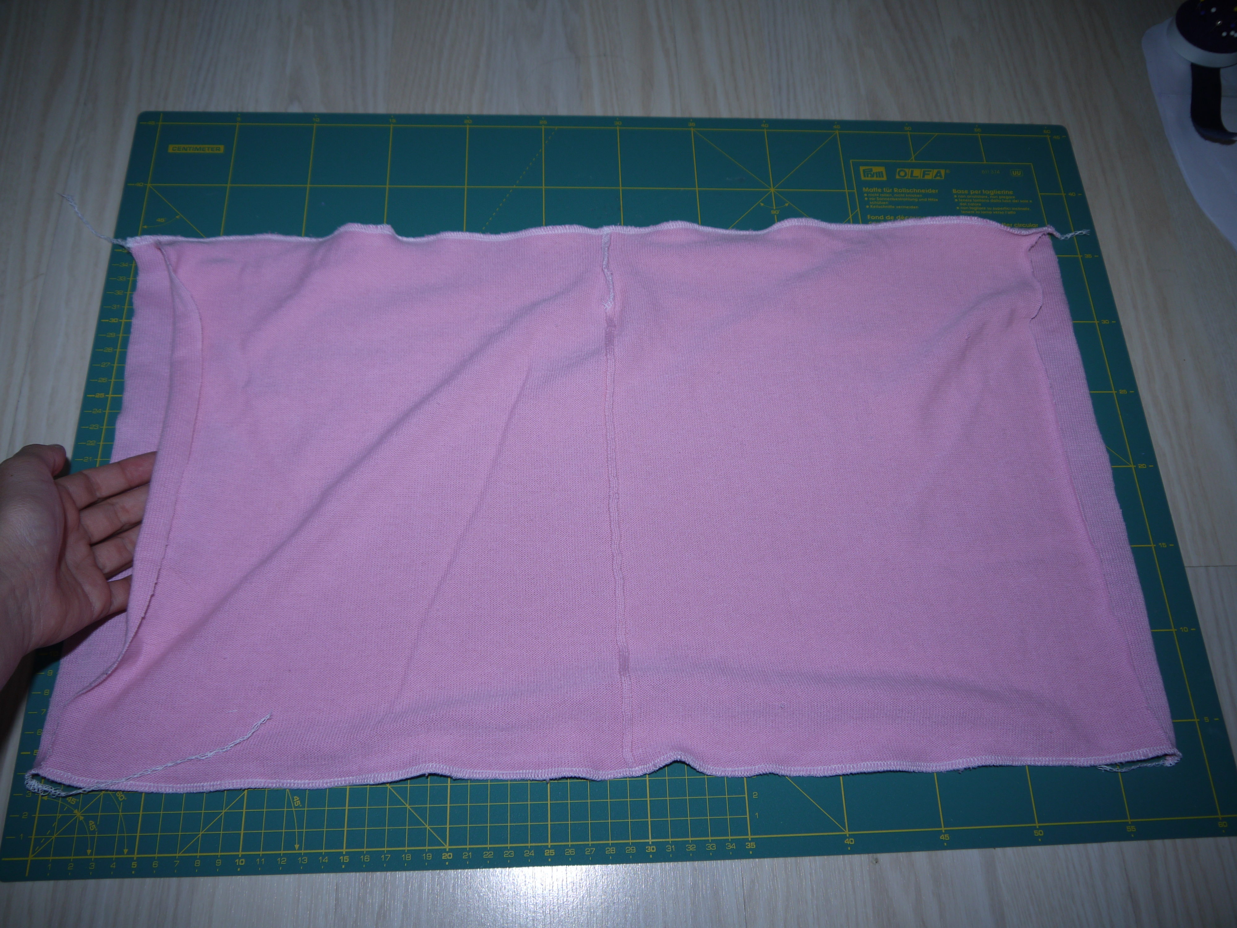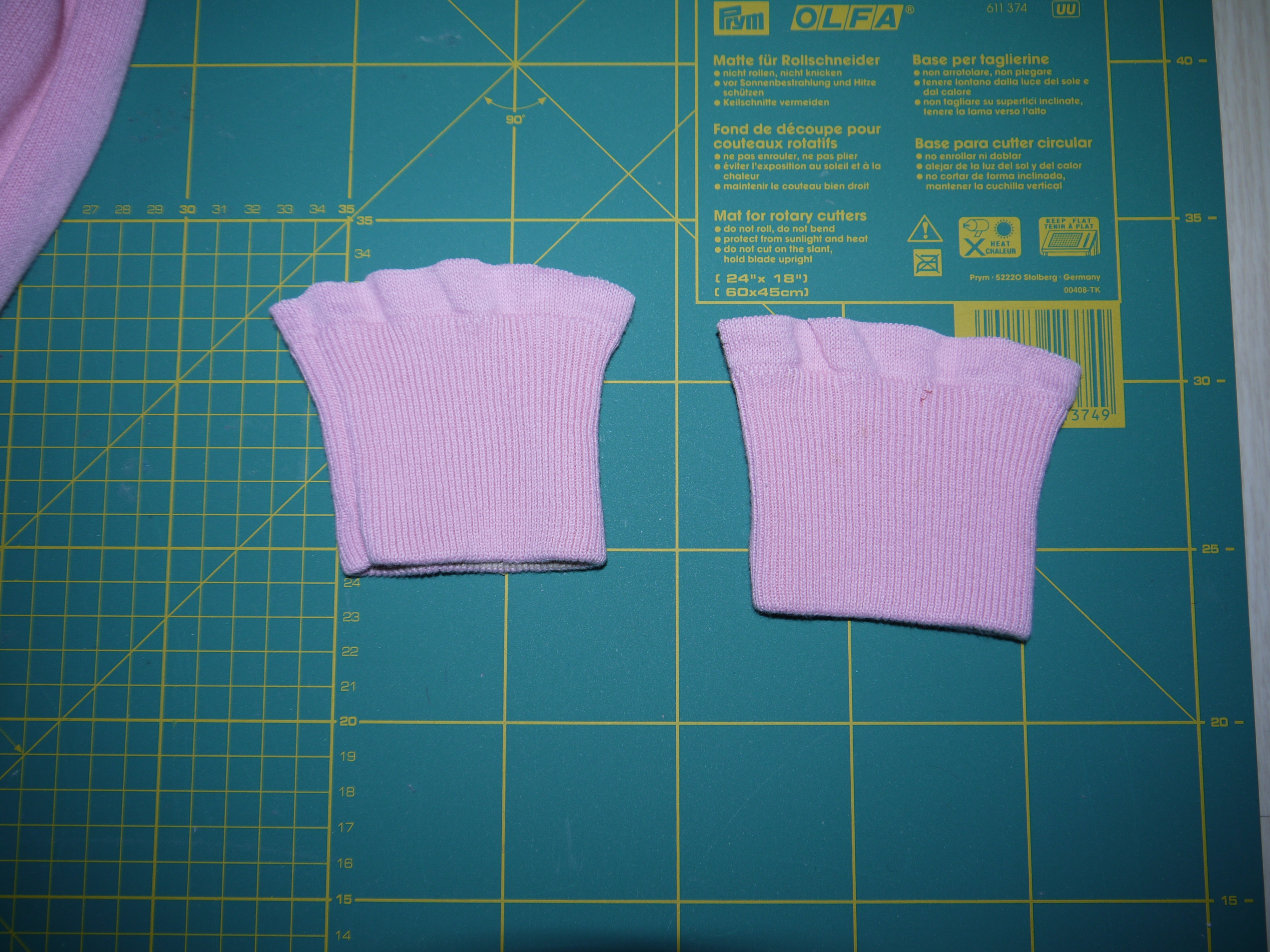I used the existing ribbed cuff from the jumper sleeves to make the cuffs for my mittens. If your jumper doesn’t have cuffs (or you are doing the world a favour by cutting up a knitted vest) you can cut 18cm long sections from the ribbing at the hem instead, or alternatively just cut a 12 x 18 cm rectangle for each cuff, fold it in half lengthwise and attach as normal. NB. I am using 1cm seam allowances throughout this project. The finished cuff circumference is 16cm and they are around 5cm deep.