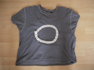 Then I appliqe-d my flower onto the shirt using a tight zigzag, catching the stabilising strip on the back.