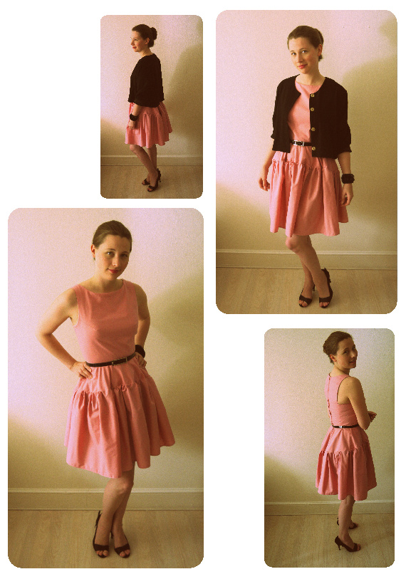 Awesome! I’ve always wanted to make this dress, but never knew where to begin. Your post really helped me get a grip on this fabulous frock. I made the dress slightly longer and also put pleats in the peplum at the back and the skirt is different, but I had a lot more fabric to play with. About ten years ago I bought 5 metres for something I never made, and found it in a bag in a box in a corner… Kinda a miracle I found it at all. Didn’t even know I had it. Mines purple :) and I love it.