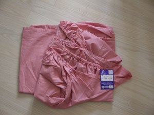 I found a sheet with my name all over it – it’s a single fitted sheet in a dusky pink rather than the De La Renta ‘hot’ pink, but it will do nicely..