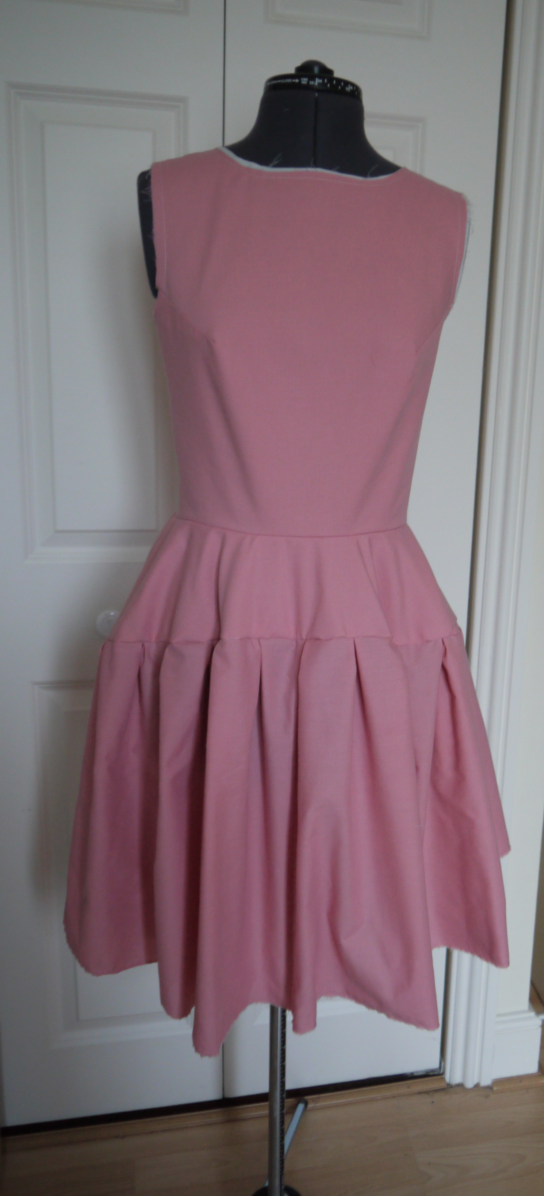 Here are the pinned pleats. In case you’re wondering, this took a really long time. You can see the front (left of the image) is longer than the back (right hand side of the image).