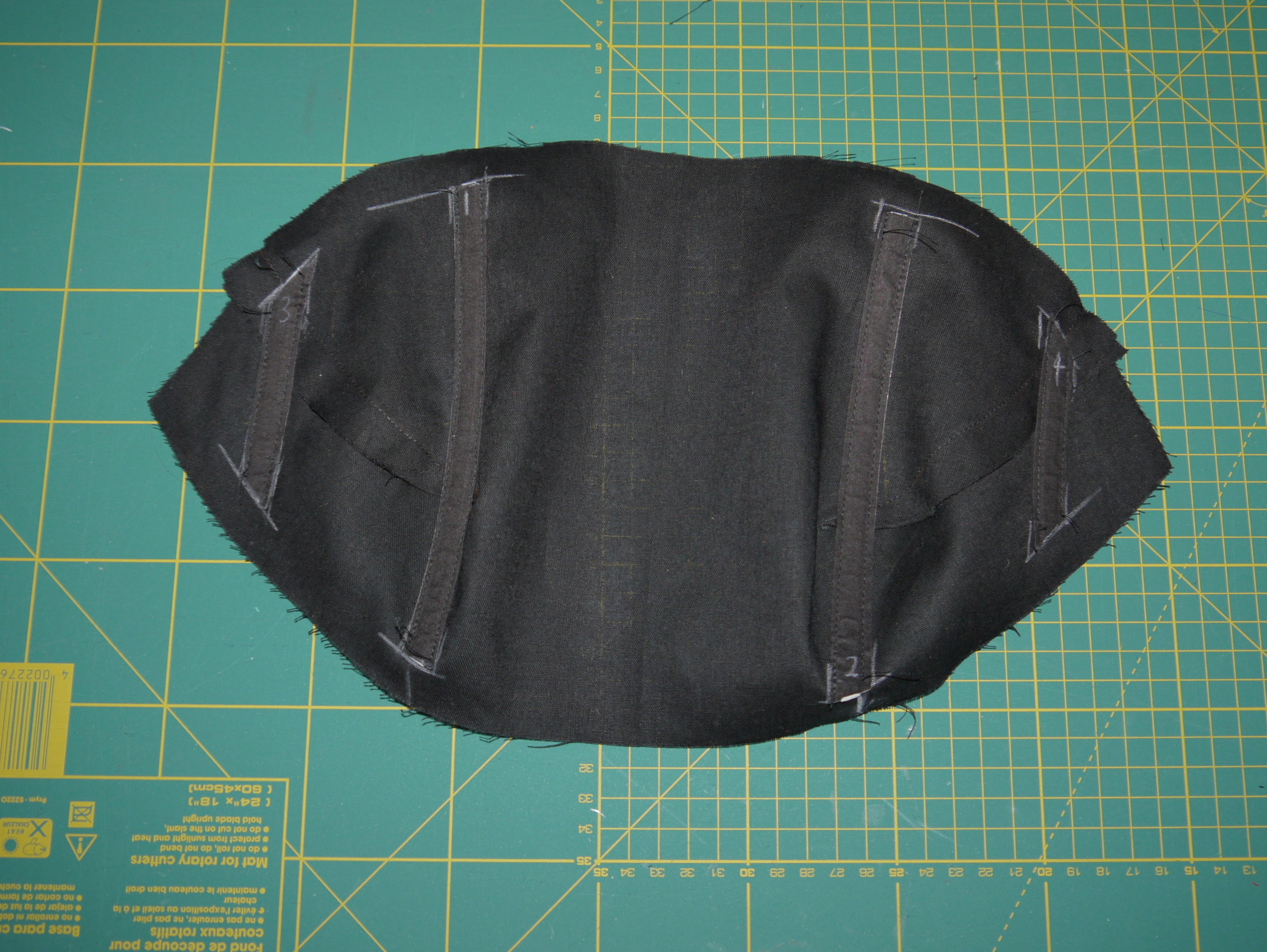 Next I began to assemble the lower bodice. I cut some strips of sew-in boning and added them to the side seams and the seams at the front.