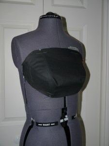 For the upper bodice, I cut one out of black calic0 and added four pieces of boning in strategic places.
