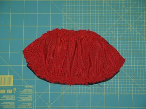 After that I made and attached a front and back facing from black calico, attached and pressed it. The finish looks so much better with the facing done! Since I preserved the gathers when I cut off the original skirt, all I had to do was sew it on.