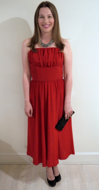 This is the first in what will be an occasional series, which I’m calling “Red Carpet Copycat”. It’s intended to replicate the style of the red carpet on a small budget using recycled materials.