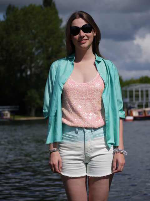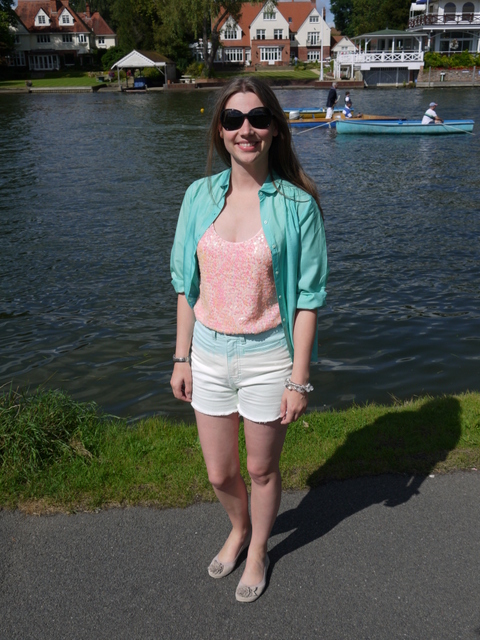 I wore these on a day out in Henley on Thames with a vintage silk blouse, plus sequins, naturally…