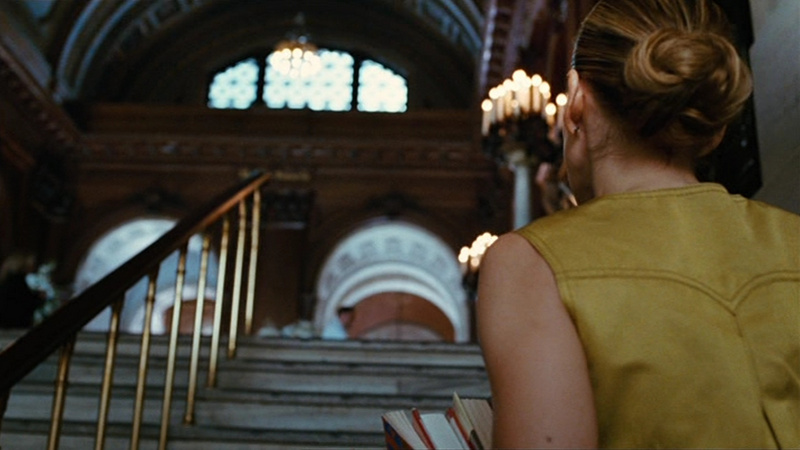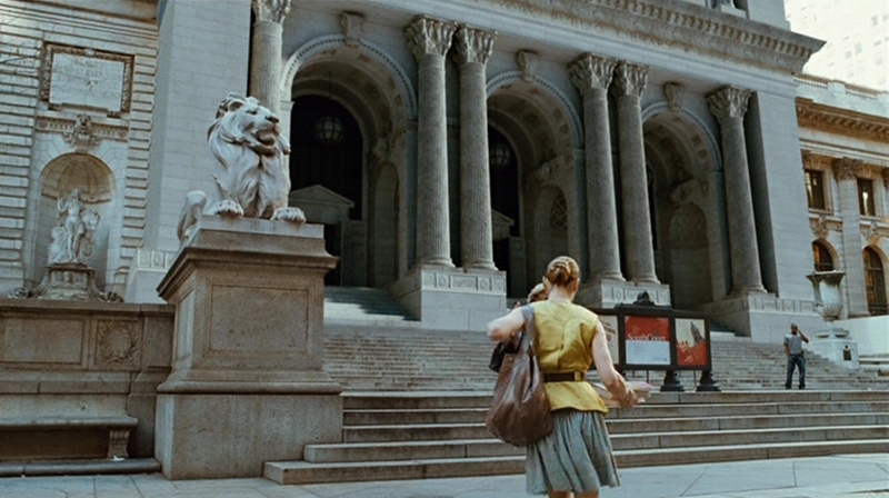 Here’s a pic of an unusual safari-inspired outfit from the movie. In this scene she is returning ‘Love Letters of Great Men’ to the library, and on seeing the beautiful painted ceiling, decides that this is the place to get married, since it houses all the great writers.