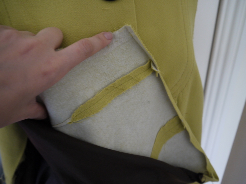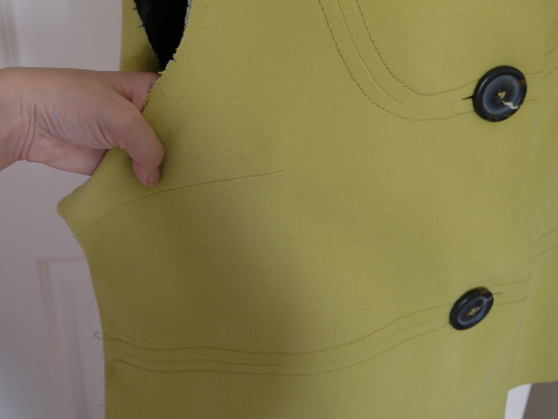 I wanted to unpick them, but I couldn’t, because they had been trimmed off on the inside to reduce bulk. So they had to stay.