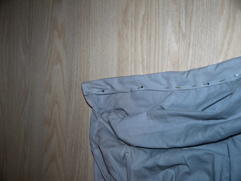 First I lazily adjusted the length by cutting a bit off the top (instead of the extensive hem) – I pretty much cut the wide waistband in half.