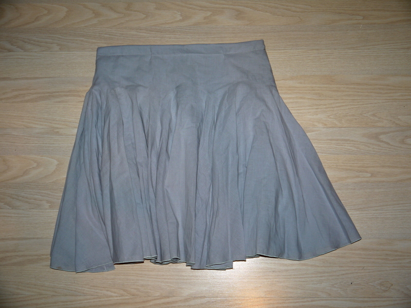 …one large full-skirted light grey skirt. This one is size 16 and came from the Children’s Society Shop in Upminster. For this I paid £2.49.