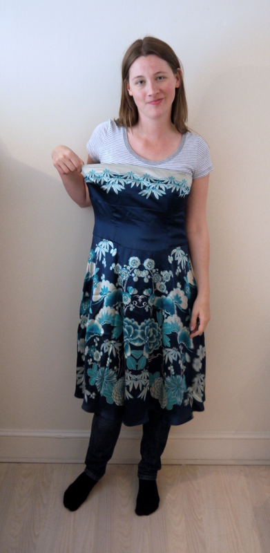 I picked up this lovely blue silk dress in the Cancer Research shop in Whitby for £6.00. It’s really beautiful silk and it has some small beads embroidered on the skirt too. Unfortunately, it’d been well worn and the underarms were pretty grubby. Plus as you can see it didn’t fit at all.