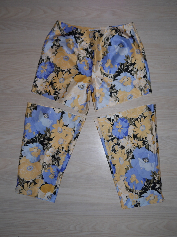 Thank you so much, Gwen. I liked the slight upwards curve on the top too, but it’s completely unintentional — the top is literally just the off cuts of the trousers sewn together. The downward curve on the shorts is created by cutting them off close to the crotch at right angles to the inside leg. I daresay it would have taken more skill to cut these so the lines were all horizontal. Thanks for noticing :)