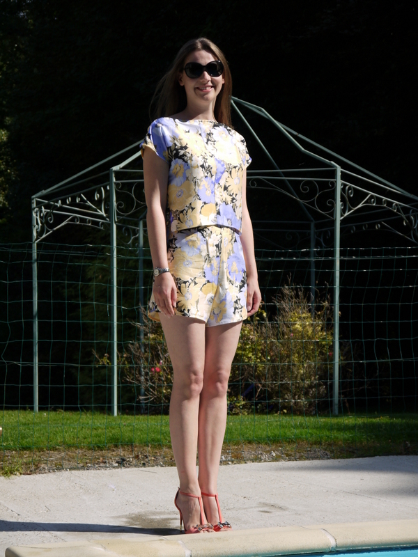 Inspiration for this project came from Stella McCartney Spring (“Resort?!”) 2013, also seen on Kirsten Dunst. It’s an interesting look – and it takes a brave person to wear matching florals – but it’s so fashion forward I just couldn’t resist. The top and shorts can always be worn separately.