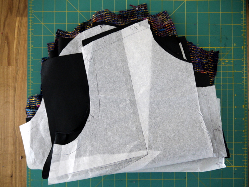 The original jacket pattern has no side seam and the front darts at the shoulder. I traced it and cut it down the side seam, and moved the front dart to under the arm, where it would be less visible.