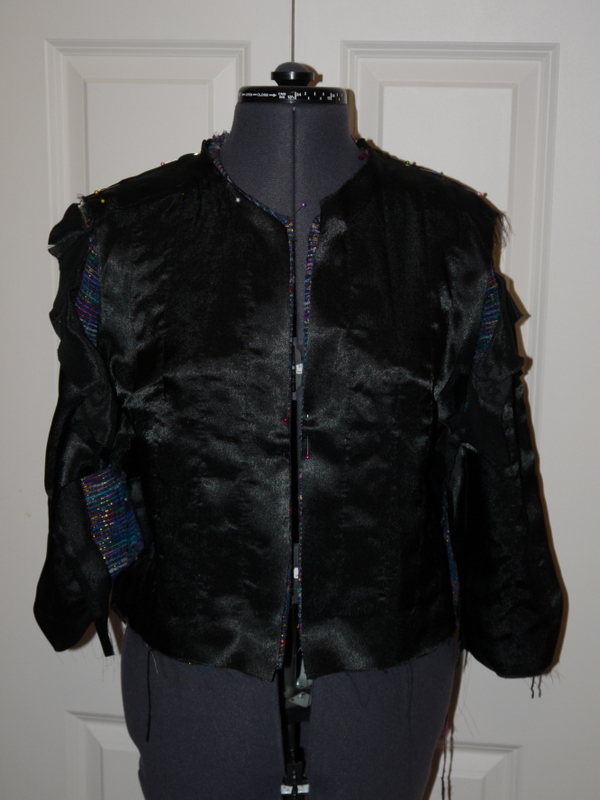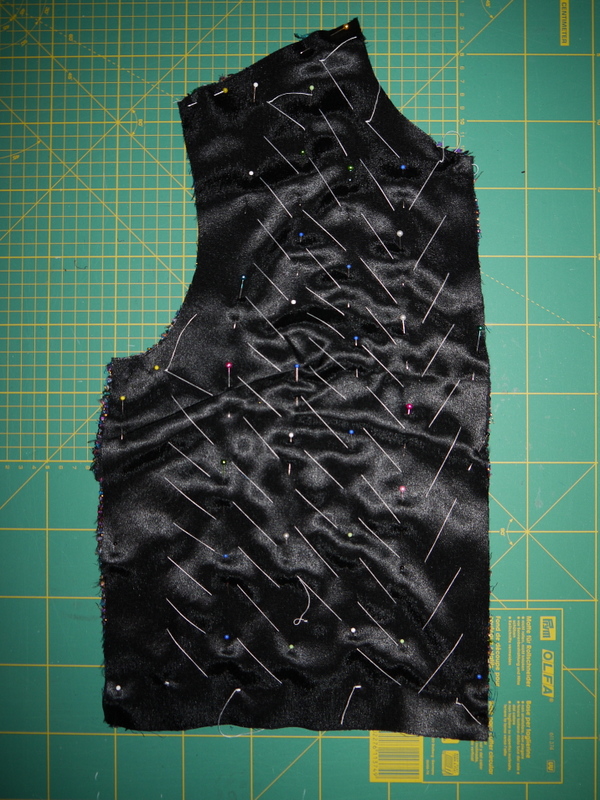 I also cut a lining from the same pattern pieces from some black satin that I had in my stash.