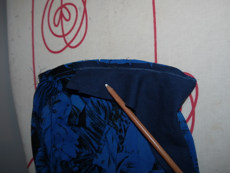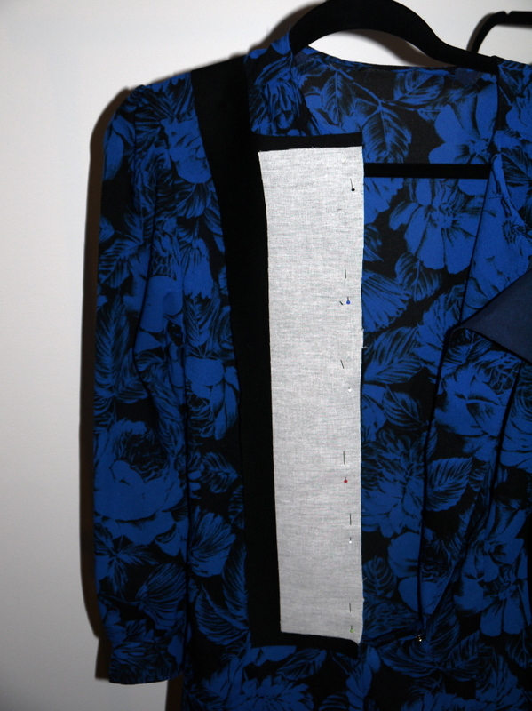 I also unpicked the right hand facing as this was cut together with the button placket on that side, which was going to be replaced with a new black placket. Since this seam allowance has already been trimmed, I drew on the original seam line with chalk before unpicking it.