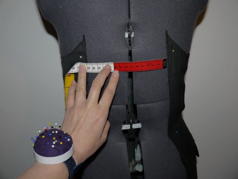 Once I’d measured, I drew out the shape on paper and pinned it to the dressform, to check the measurements were roughly OK.