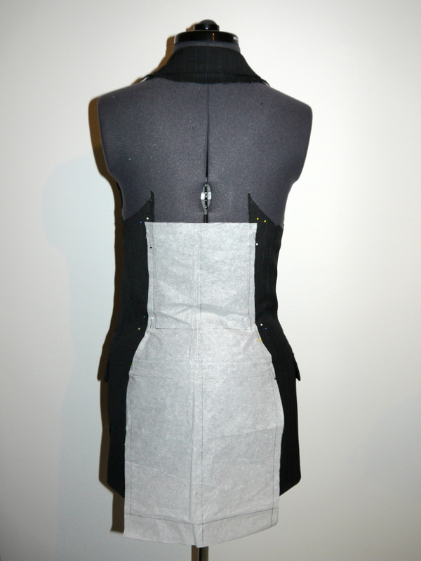 For the back, I pinned the sides around my dress form to see what kind of shape should be added.