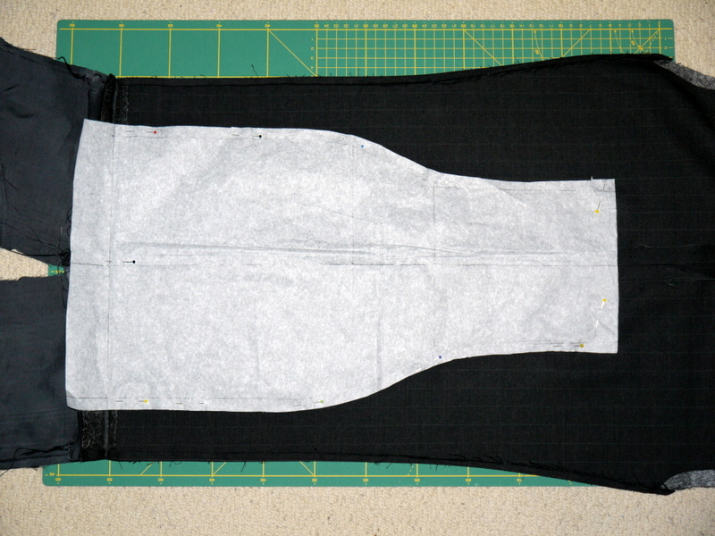 After trying it on again, it needed to be more fitted. It was looking a bit too straight-up-and-down and I wanted to give the impression of a hip curve like in the original. So, I added two darts of about an inch at the waist.