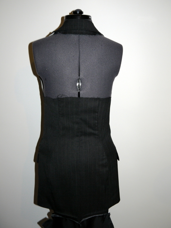 I then cut that shape out of the back, placing the hem edge where the original hem would have been (as that had stiffening in it that I wanted to keep along that line). I left the lining attached too.