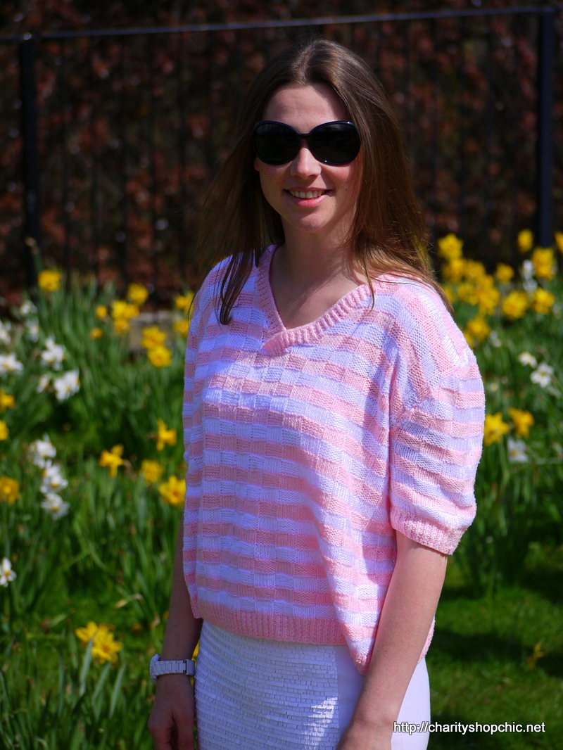 I’m wearing this in the spring sunshine with my white sequin skirt and big heels. What do you think?