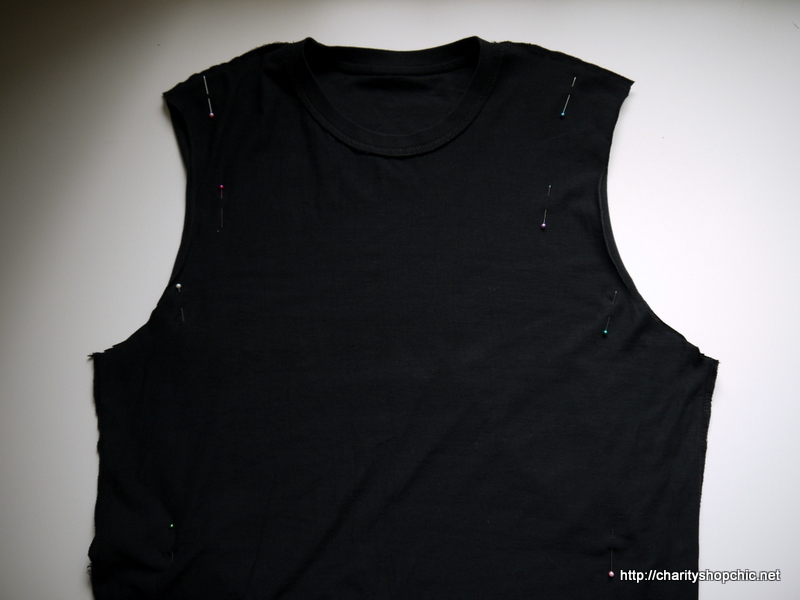 Then I tried the shirt on and marked with pins where the side seam should be and where the armholes should finish.