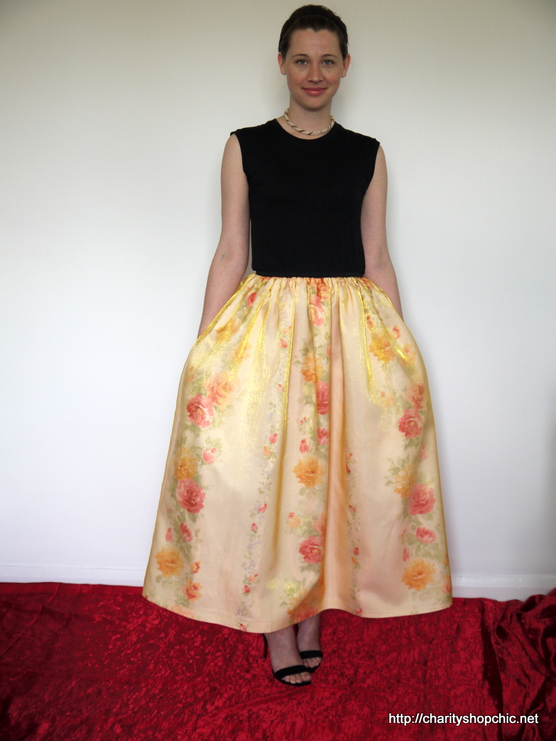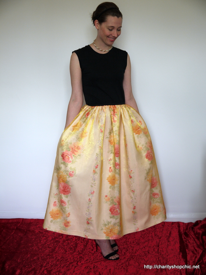 This is such a great look!! The curtain material gives the skirt a really good body. I hope you have a red carpet style event to wear it to.
