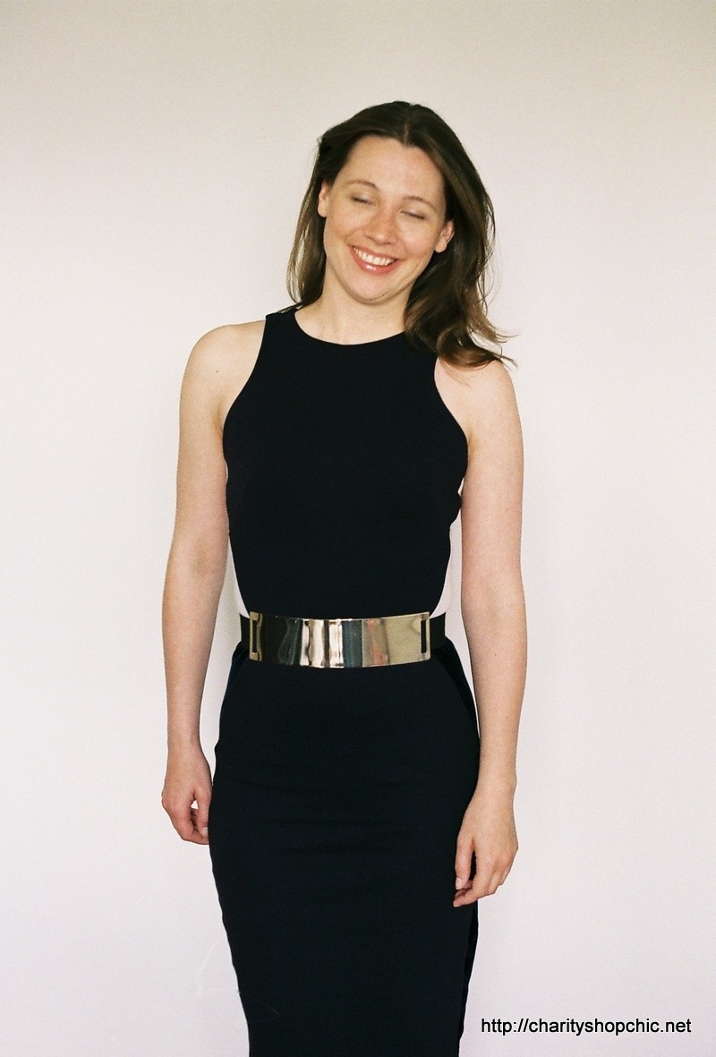 Here are a rather gratuitous amount of images of the final dress. I wore this to an awards ceremony with friends recently and had great fun ‘modelling’ in front of the photo board. I paired it with a gold shiny belt and black and gold sandals. I even did my hair like Gwyneth.