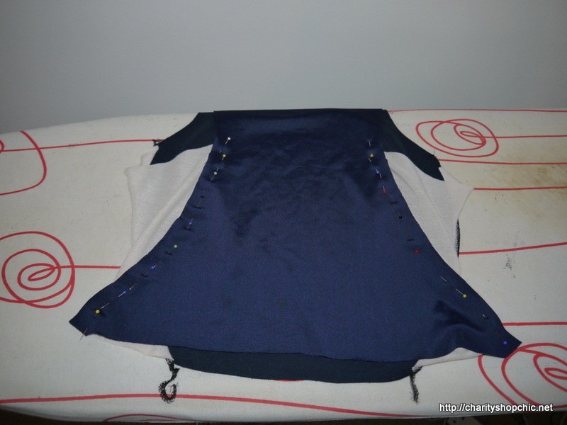 I’m also using a very thick blue t-shirt, £3 from Richard House Hospice shop in Upminster, and this very thin beige t shirt which was £3 from the Octavia Foundation shop in Tooting.