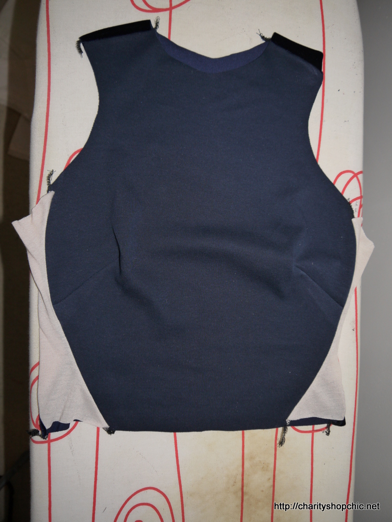 And overlocked the curved seams holding the pieces together. There isn’t a zip in this, it’s stretchy enough to pull on.