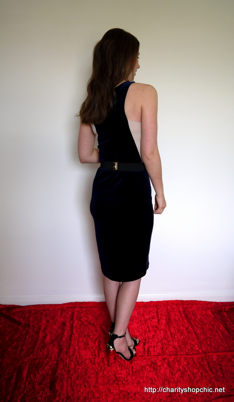 Longtime readers will remember my last take on the Stella McCartney bodycon dress, blogged here. This year’s take on it is the ‘Saskia’ dress from the Evening 2012 collection which has been worn by pretty much everyone, from Gwyneth Paltrow to Katharine Jenkins… to Victoria Pendleton to Tess Daly, in its various forms. I have been dying to recreate this dress since I first saw it but couldn’t decide on the right colour combination. The front is matte, but the back is sheeny stretch velvet (velour!) with transparent side panels.