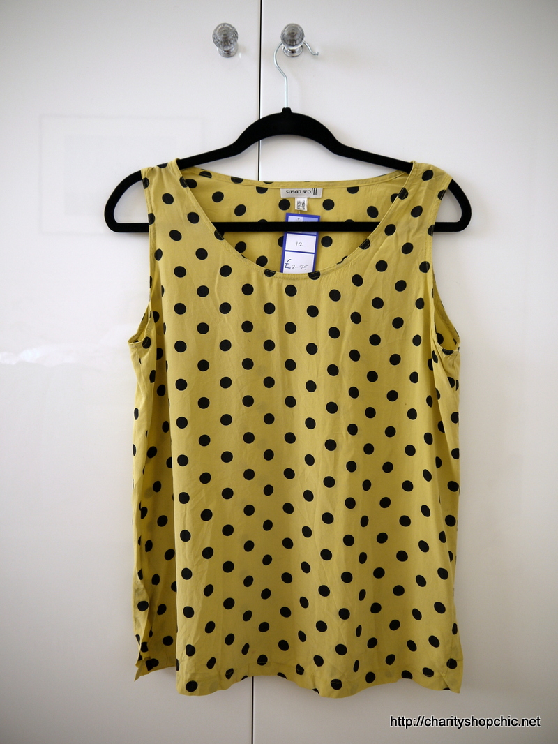 What can you get for £2.75 these days? How about a vintage silk top? This beauty is 100% silk and came from the Cancer Research shop in Streatham.