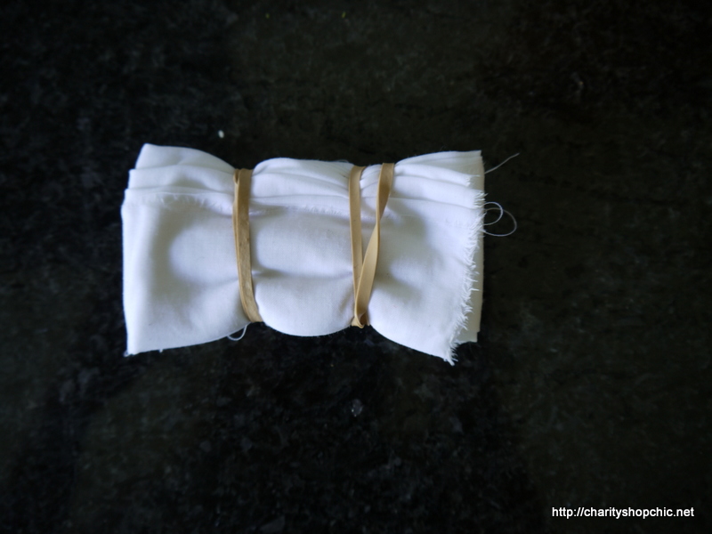 Following the instructions on the packet, I dunked my fabric in water and rung it out so that it was wet but not dripping. This helps the dye coat evenly.