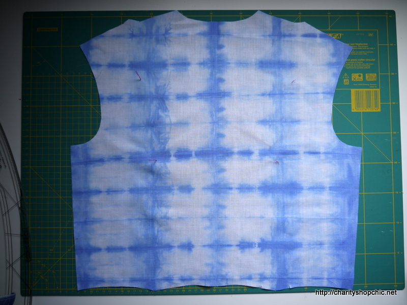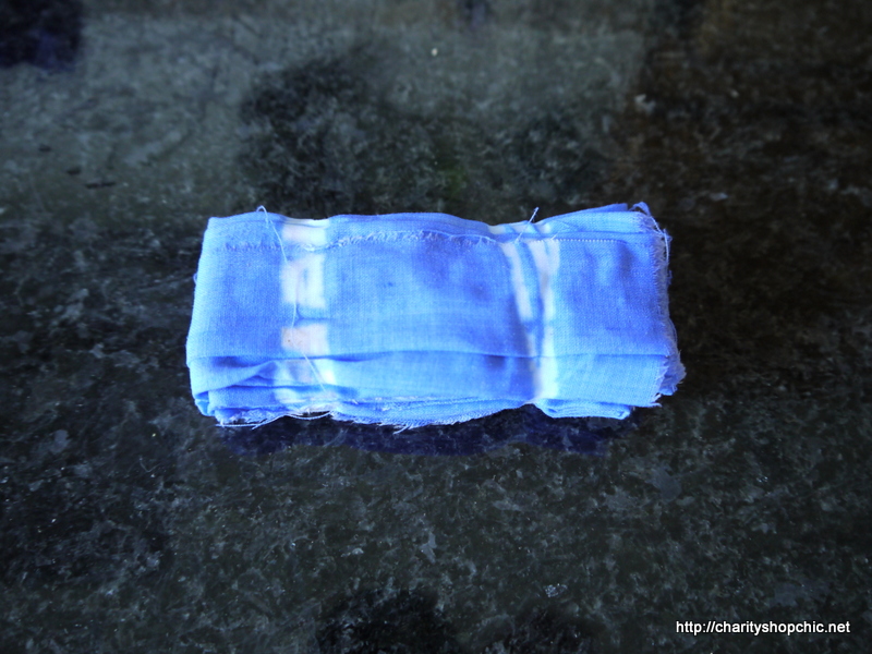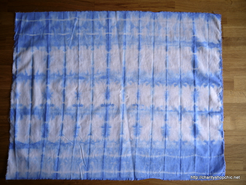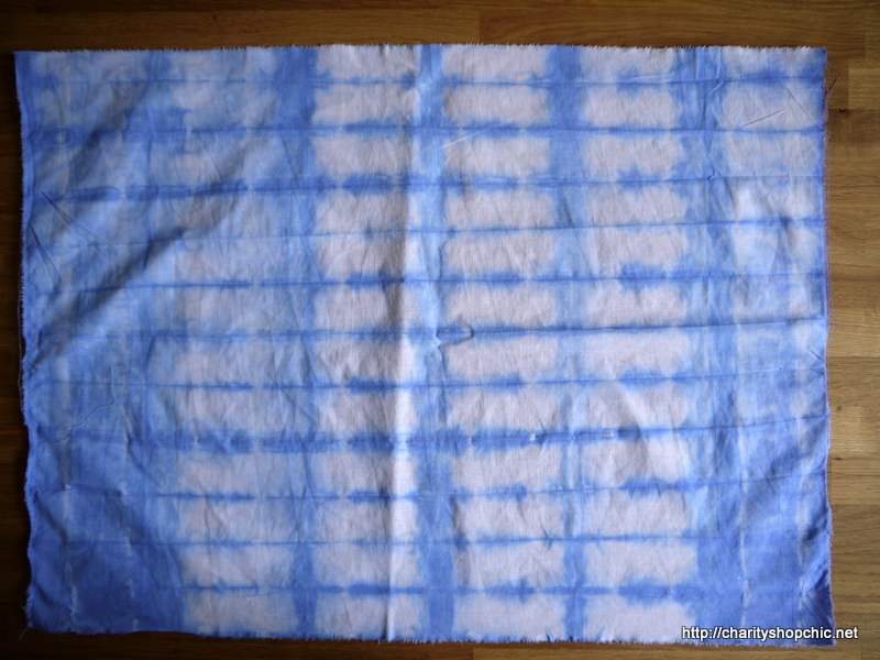 Now, when I saw that dress, my first thought was: SHIBORI. Shibori is Japanese traditional tie-dye which is traditionally done using indigo dyes. There are many techniques, including folding, binding, twisting, clamping and sewing. There are some great examples on the web if you want to read more about it. Ginger over at Ginger Makes did a Shibori class with some of the NY based sewists which you can read about here. Seeing those pictures really whetted my appetite for what might be possible. Erica over at Recycled Fashion also tried this recently and made a beautiful T-shirt. And for more on dying… Sallie Oh does some incredibly inspirational things with dye – like this one which looks a bit shibori-like. She has a great dye tutorial, with more examples, here as well.