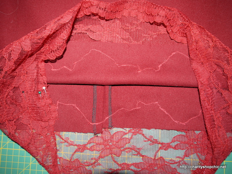 Applique-ing the lace was fairly straightforward, using a small, narrow zig zag.