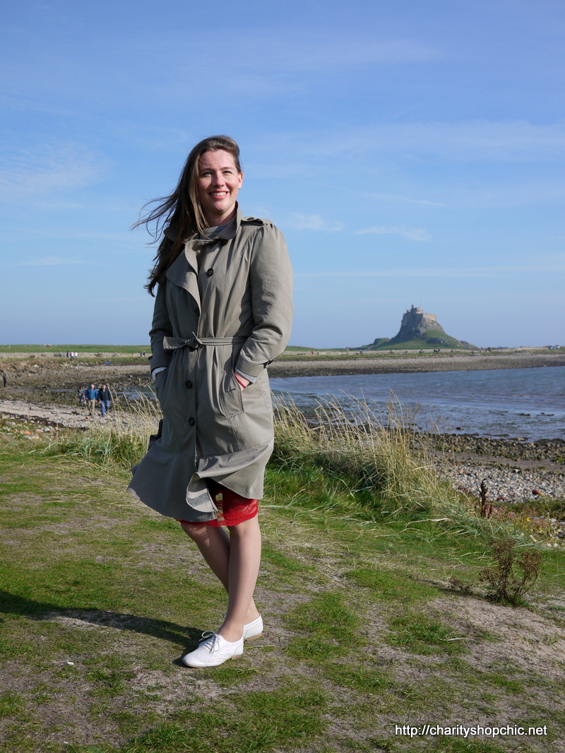 My chosen setting for wearing this coat was Holy Island (Lindisfarne), which is off the coast of Northumberland, near the Scottish border. It’s a beautiful place. Relatively flat and windswept, the landscape is beautiful, topped off with the iconic Holy Island Castle. This unusual building was built as a fort in 1550 to defend us from the Scots and Norsemen! It was converted to a home by Arts and Crafts architect Sir Edwin Lutyens in 1901.