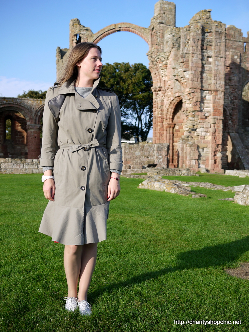 I am sure you remember this trench coat. This one was sent to me as a refashioning challenge by Portia – read the full post on her blog here, or I posted it here as well. I know she only paid £1 for this and I had great fun remaking it.