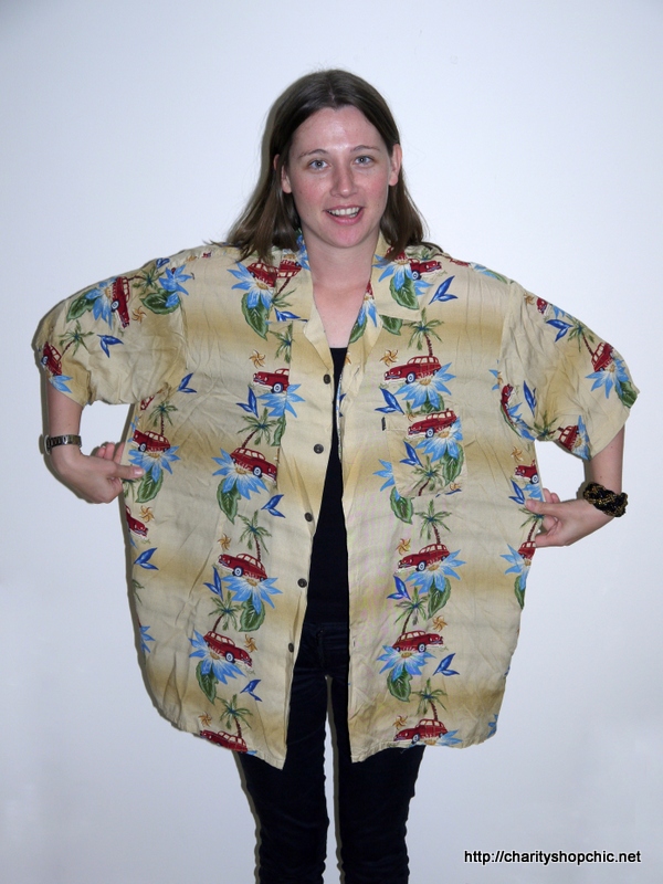 Thank you for re-posting this! Living in southern California, these shirts are plentiful. I have one in my pile that I bought because I love the print and the rayon fabric but have needed ideas to feminize.