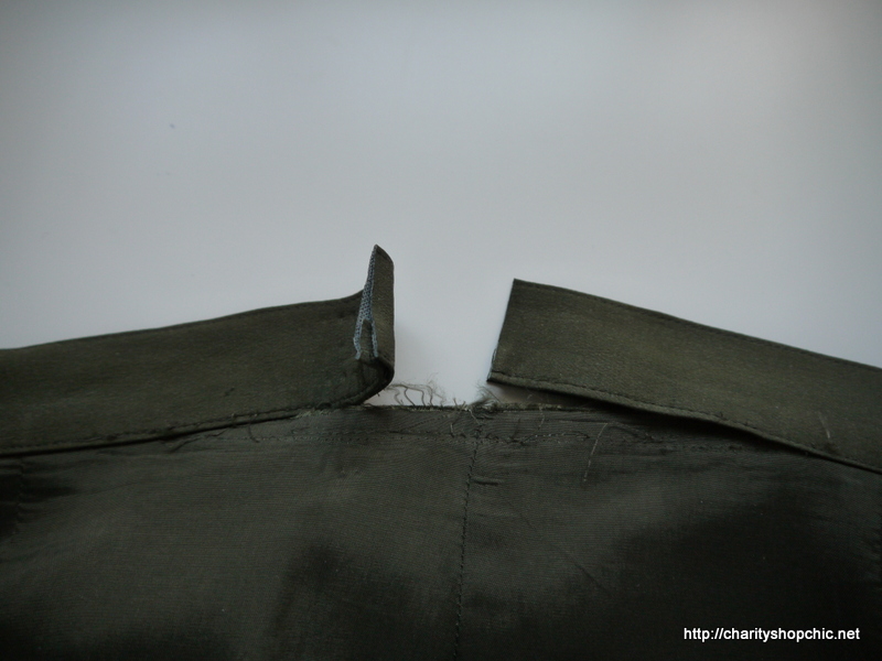 Obviously the size had to be addressed. I unpicked the waistband a small way at each side seam and cut it apart in the middle.