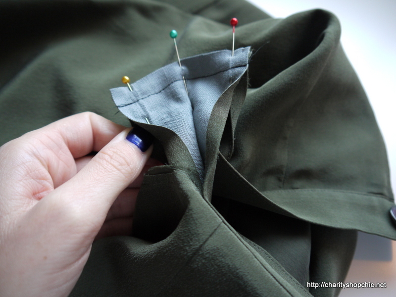 I then took in the skirt from the waist, tapering down to the hips. I did the same to the lining.