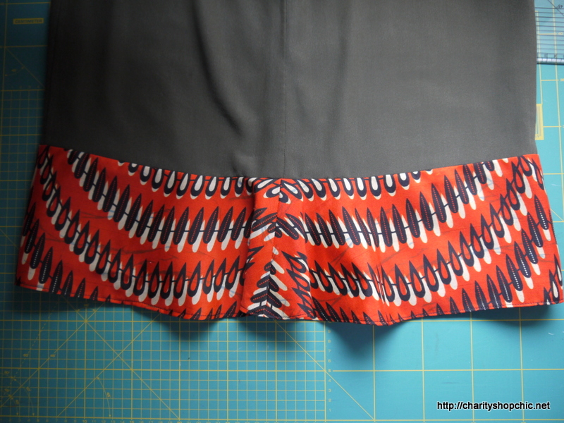 I wanted to add a colourblocked panel at the bottom of the skirt. So… I cut off the bottom section in a straight line.